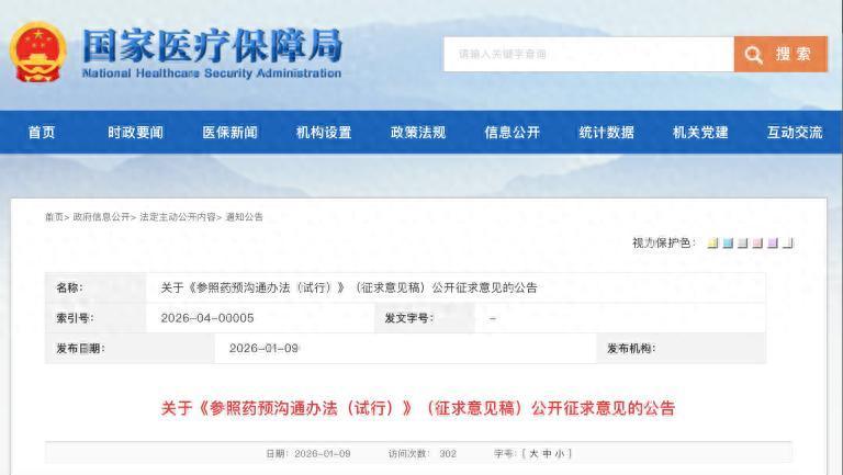 (人民日报健康客户端记者 王艾冰)1月9日晚三星证券,国家医疗保障局就《参照药预沟通办法(试行)》(征求意见稿)https://www.nhsa.gov.cn/art/2026/1/9/art_109_19319.html向社会公开征求意见。医保局认为,有必要单独设立参照药沟通环节,以便于专家在目录调整工作开始前就通过充分讨论,进一步提高参照药选择的科学性、公正性、规范性。